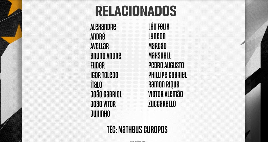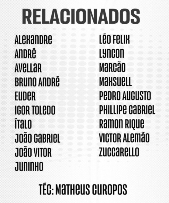 Jogadores relacionados para enfrentar o Corinthians, pelas Quartas da Copinha 2025!