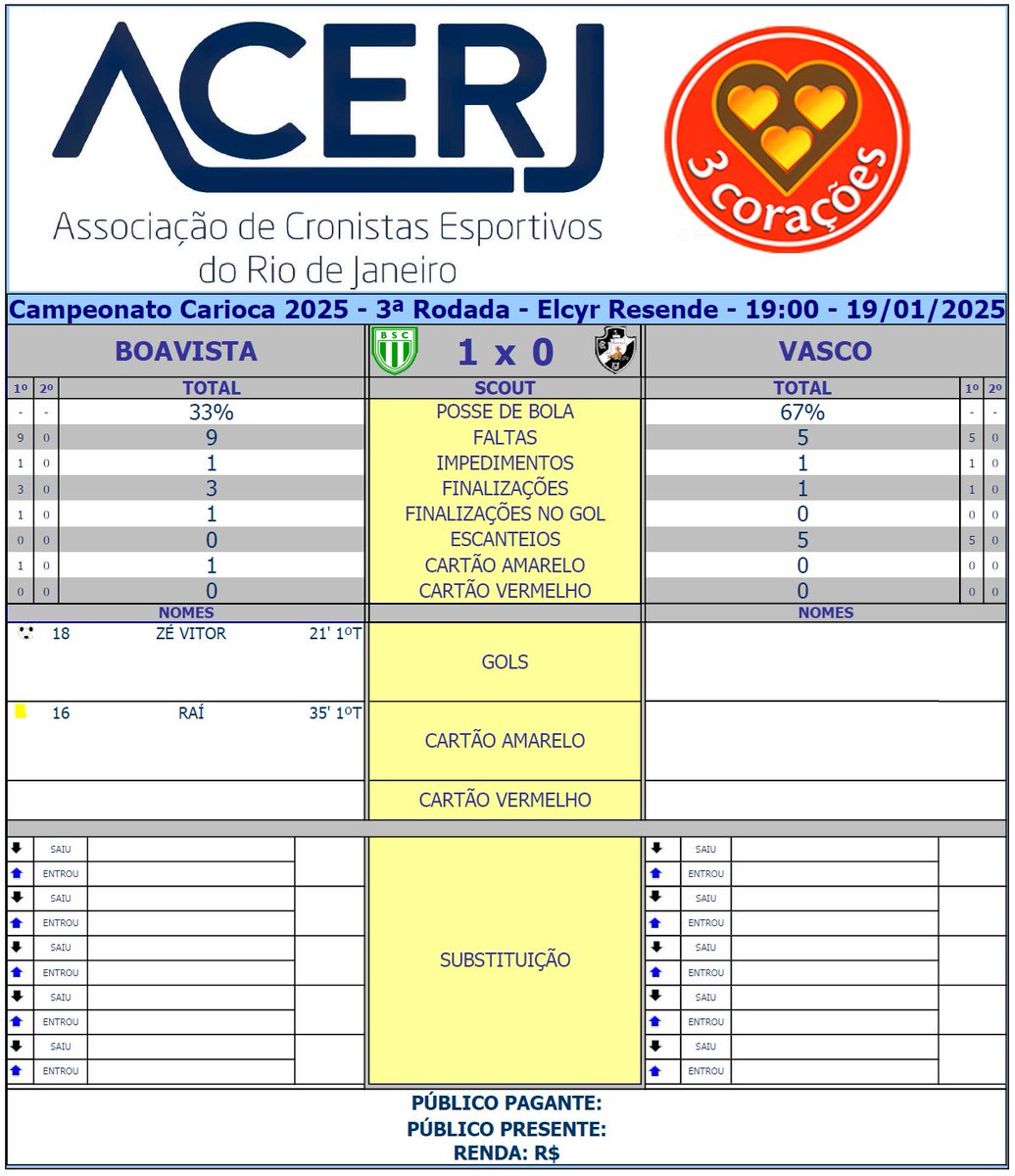 Scout do 1º Tempo de Boavista e Vasco pela 3ª Rodada do Campeonato Carioca 2025 no Elcyr Resende #Acerjinforma #CariocaSuperbet2025 #BVTxVAS #BoavistaSC #Vasco @Cariocao @boavistasc @VascodaGama