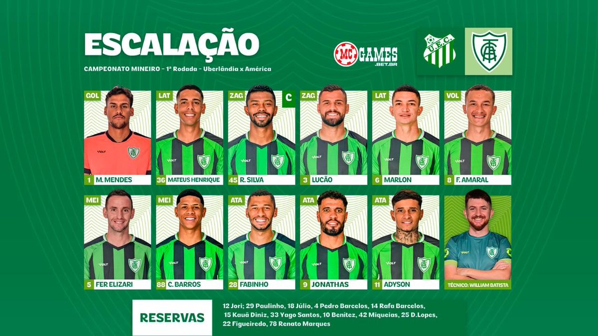 Barros foi titular e Figueiredo reserva (entrou aos 13' do 2º tempo) no empate de 2 a 2 entre Uberlândia e América, válido pela estreia do Campeonato Mineiro.