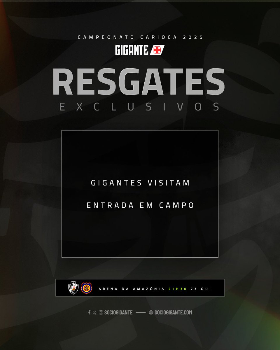 Alerta de Resgates Exclusivos para o jogo entre VASCO x Madureira, nesta quinta-feira (23), às 21h30, na Arena da Amazônia.