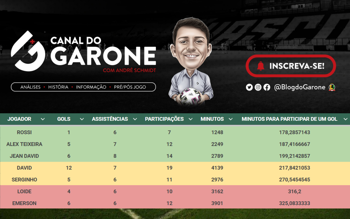 Pra quem ainda não entendeu o porquê de citar o Emerson Rodriguez na análise do Lóide, é por isso aqui: baixa média de participação em gols.
