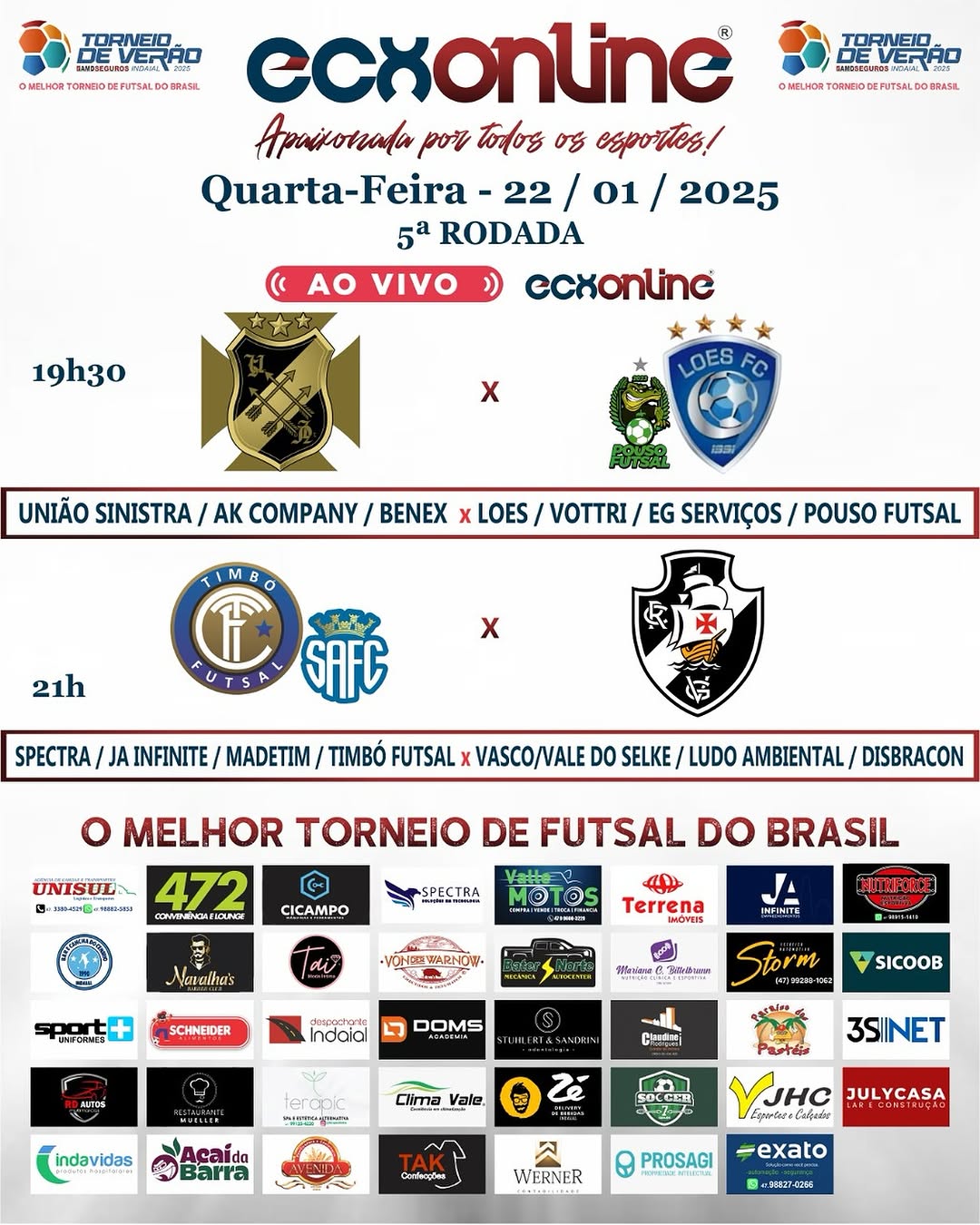 20/01/25 - Futsal: Assista a Vasco x União Sinistra, pelo Torneio de Verão de Indaial