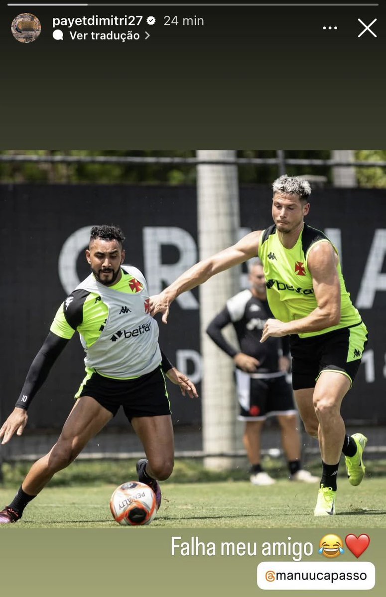 Payet posta foto com Capasso de lance no CT Moacyr Barbosa; veja
