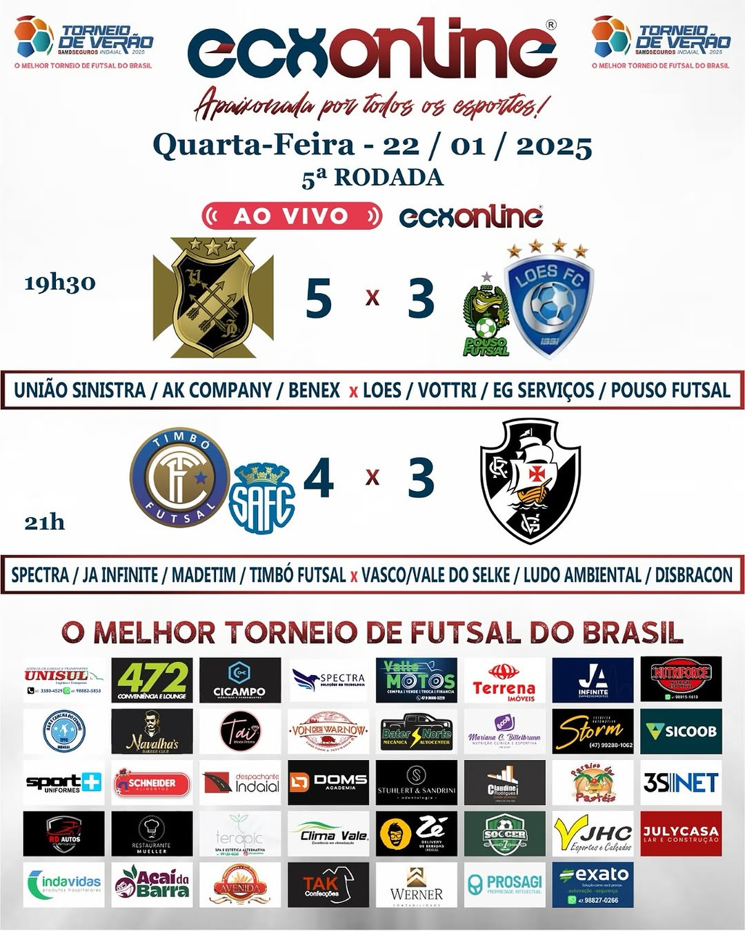 38º TORNEIO DE VERÃO DE FUTSAL ''AMD Seguros'' DE INDAIAL | MASCULINO FEDERADO | 5ª RODADA