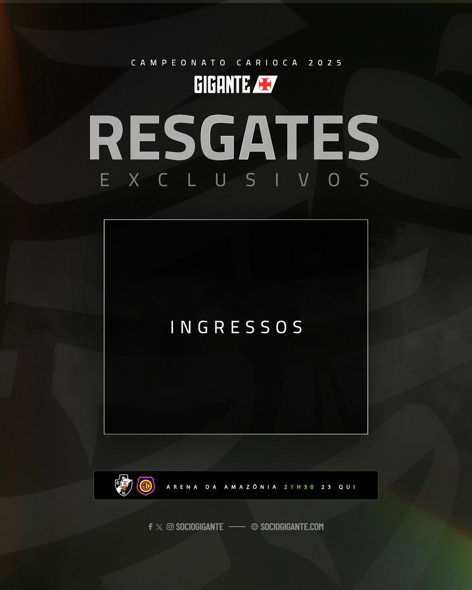 🚨 Alerta de Resgates Exclusivos para o jogo entre VASCO x Madureira, nesta quinta-feira (23), às 21h30, na Arena da Amazônia.