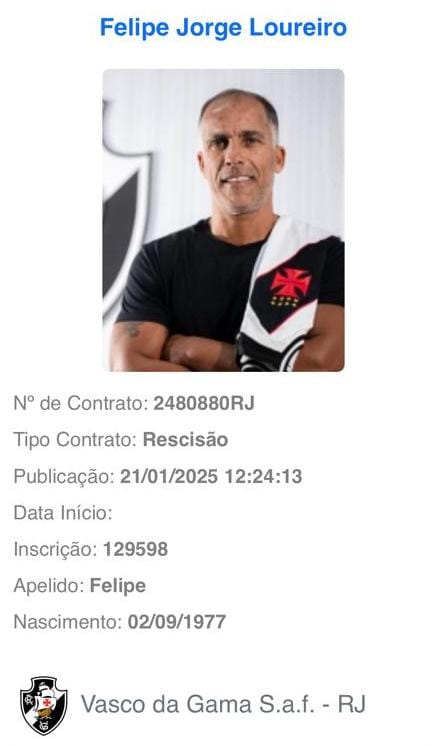 Muitos torcedores se assustaram na noite de quarta-feira (22), ao ver o contrato de Felipe Maestro, Direto Técnico do Vasco, rescindido no Boletim Informativo Diário (BID).