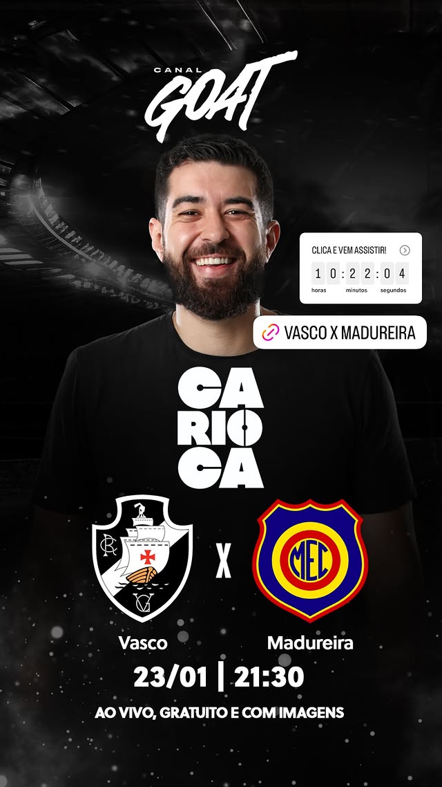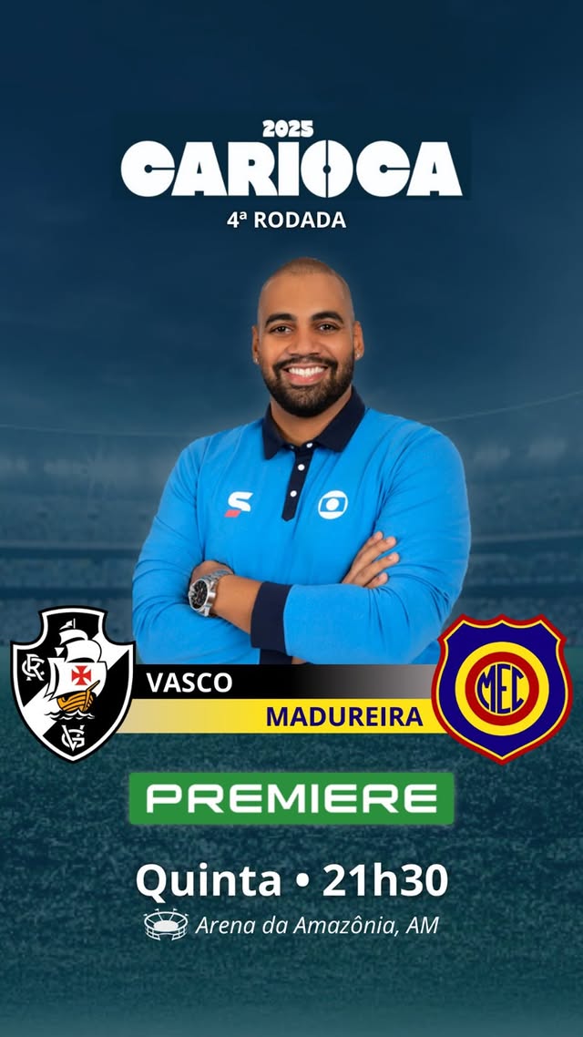 Confira os profissionais que trabalharão na transmissão de Vasco x Madureira na TV e no Youtube.