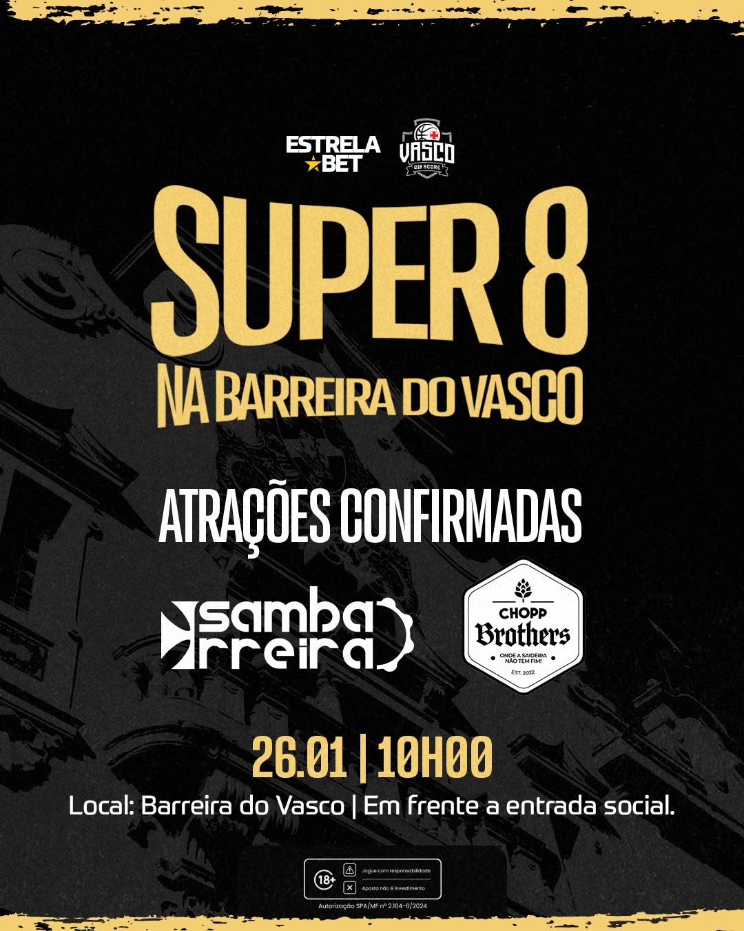 No próximo domingo (26), R10 Score Vasco e Flamengo protagonizam um dos confrontos mais aguardados das quartas de final da Copa Super 8, o tradicional Clássico dos Milhões. As equipes duelam em jogo único, às 11h (horário de Brasília), no Maracanãzinho (RJ). Após uma emocionante classificação contra o Bauru, na última rodada do primeiro turno do NBB Caixa, que garantiu à equipe cruzamaltina a sétima colocação na primeira metade do torneio, a EstrelaBet convida a torcida do Gigante do Basquete para apoiar o time de uma forma especial. Conforme prevê o regulamento, confrontos entre equipes que também têm futebol são com torcida única para o mandante. Por este motivo, o R10 Score Vasco contará com o apoio vindo de outro lugar: a Barreira, o quintal de casa dos vascaínos.