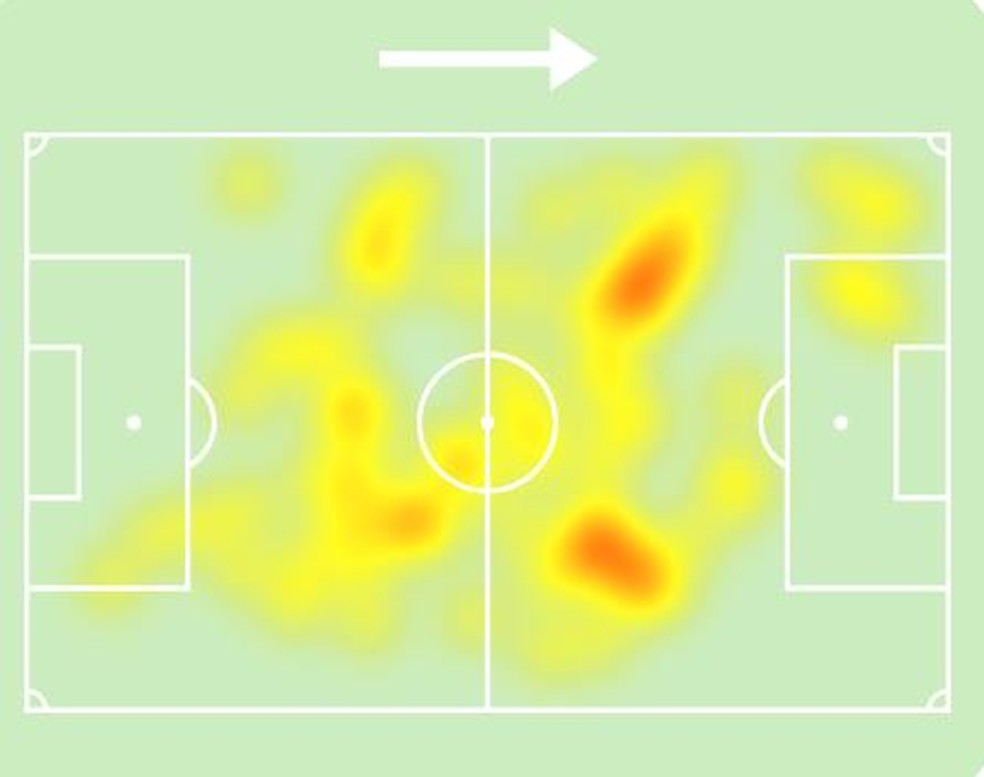 Tchê Tchê cobriu boa parte do meio de campo, em especial a entrada da área do adversário, como mostra o mapa de calor mais abaixo. Depois da vitória, ele foi elogiado pelo técnico Carille.