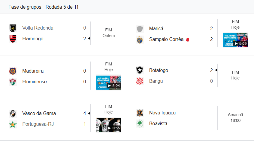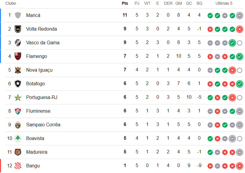 A um jogo do fim da 5ª rodada da Taça Guanabara, o Vasco, que goleou a Portuguesa por 4 a 1, subiu para a 3ª colocação. Se o Nova Iguaçu derrotar o Boavista nesta 2ª-feira, no jogo que encerra a rodada, o Vasco cairá para a 4ª posição, mas, ainda assim, seguirá no G4.