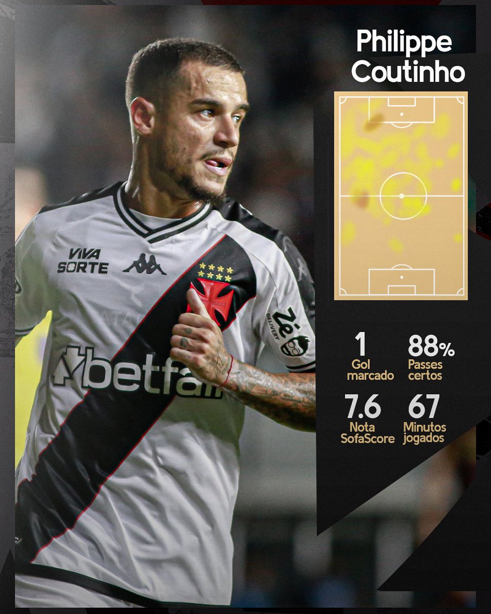 đ | NĂșmeros de Philippe Coutinho na estreia do Vasco em SĂŁo JanuĂĄrio.
