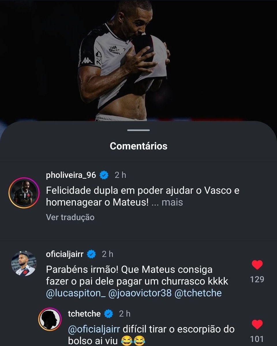 Veja a resenha dos jogadores do Vasco no Instagram após a goleada sobre a Portuguesa
