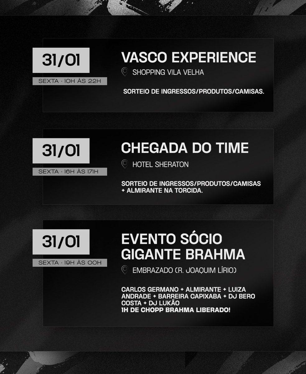 Durante a semana que marca o duelo entre Vasco x Volta Redonda no Estádio Kléber Andrade, o Gigante da Colina preparou uma série de eventos especiais para as cidades de Vila Velha, Vitória e Cariacica! 🎉