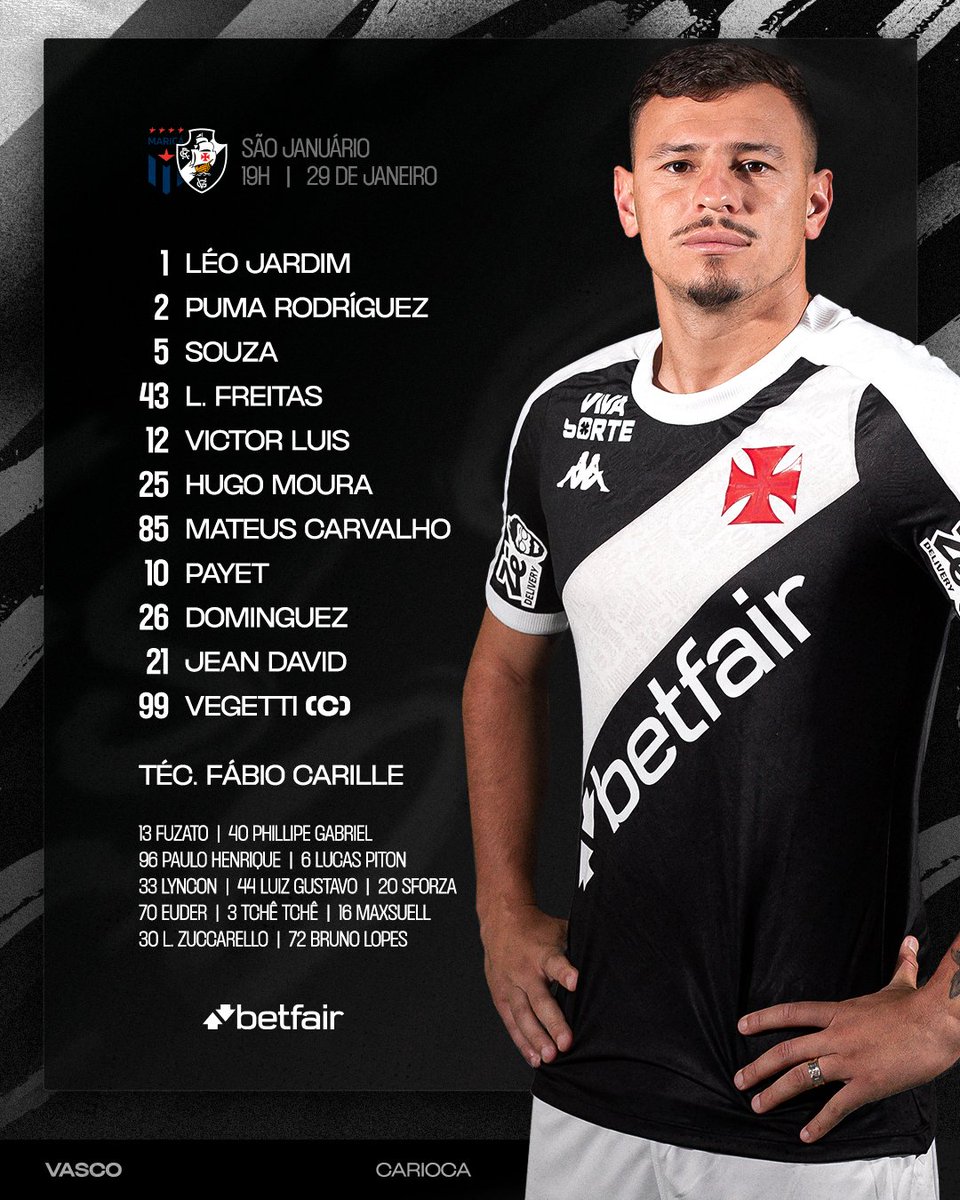 📋 O Vasco da Gama está escalado pelo treinador Fábio Carille 💢