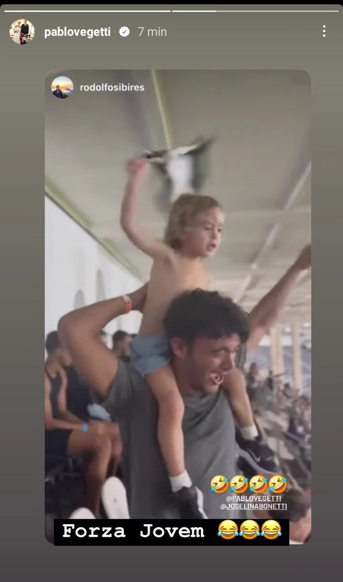 Vegetti posta vídeo do filho vibrando em São Januário e escreve: 'Forza Jovem'