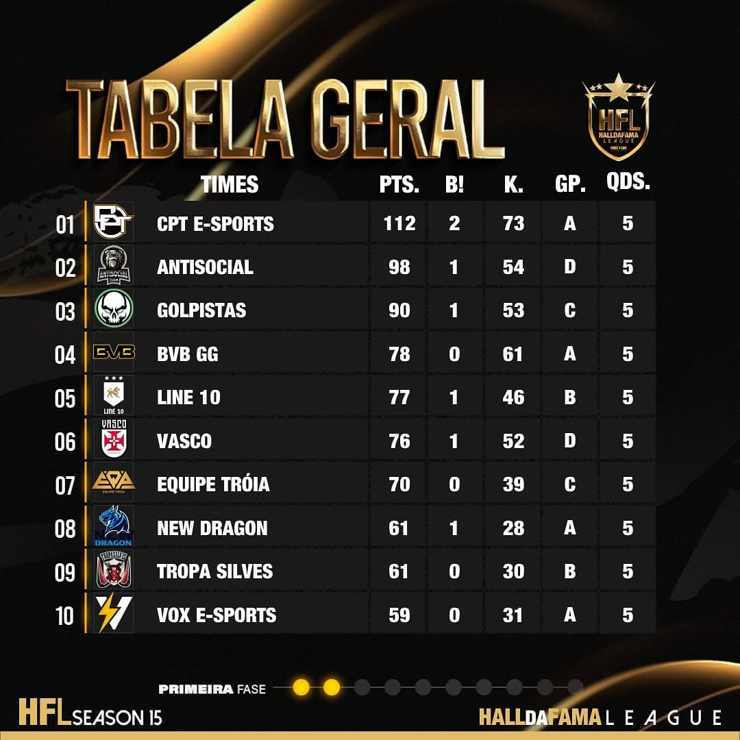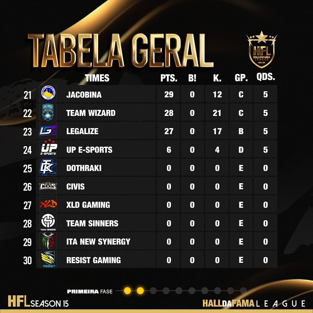 Tabela da RODADA 2 da FASE CLASSIFICATORIA da LIGA HFL SÉRIE A ELITE SEASON 15 🔥🚀