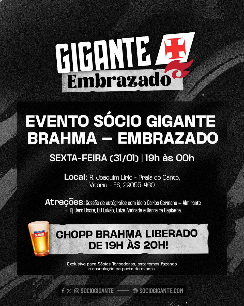Sócio Gigante + Embrazado fazem um evento exclusivo a partir das 19h, com atrações musicais 🎶 e muito chopp 🍻