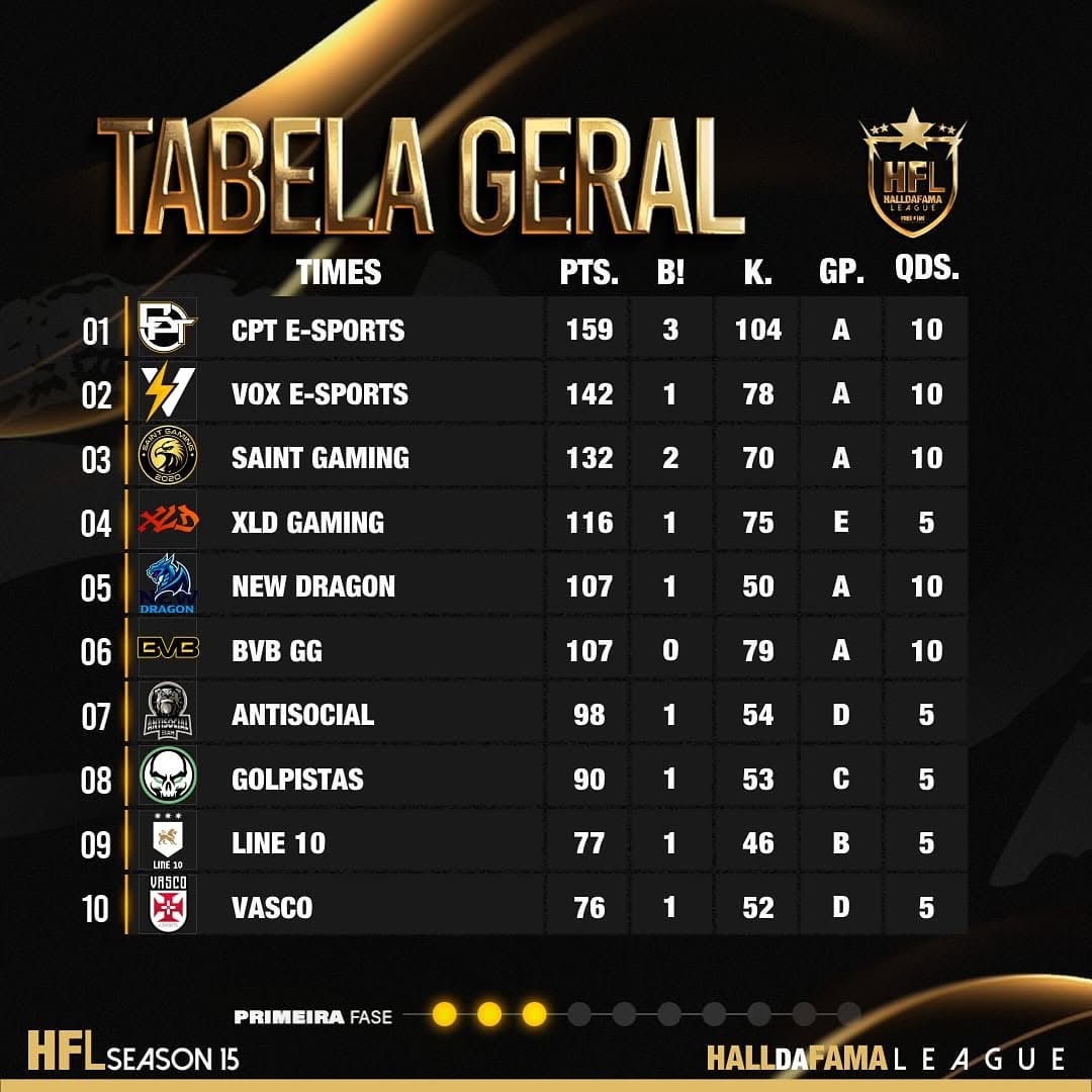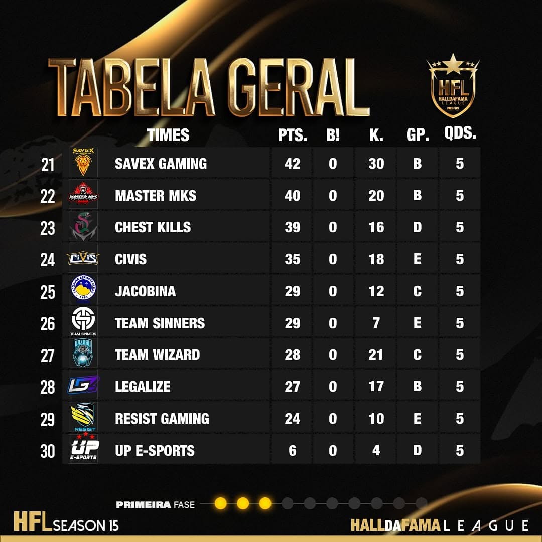 Tabela da RODADA 3 da FASE CLASSIFICATORIA da LIGA HFL SÉRIE A ELITE SEASON 15 🔥🚀