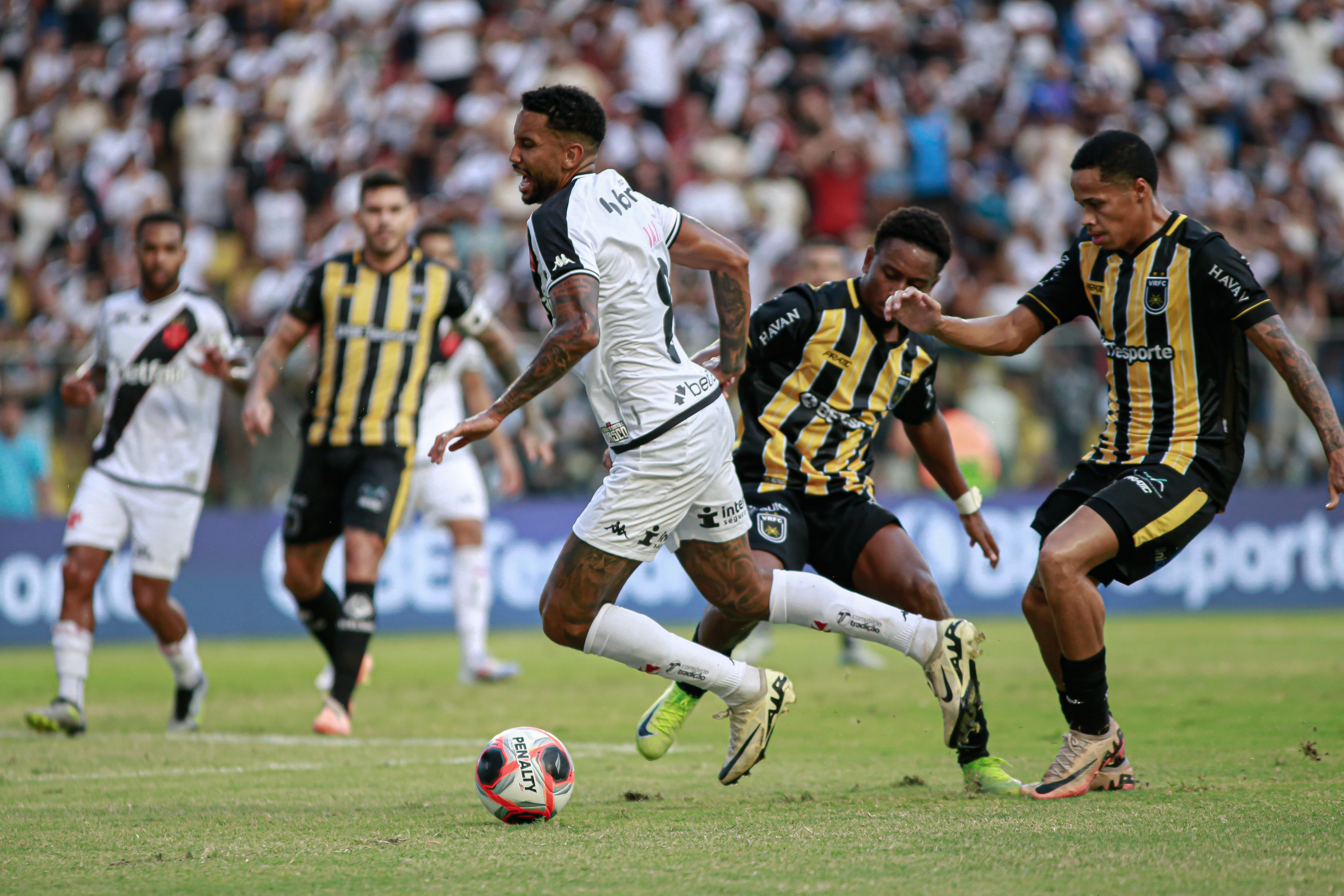 Vasco e Volta Redonda começaram a partida de forma bem equilibrada. Os dois times buscaram o gol, mas, ao mesmo tempo, estavam bem postados defensivamente.