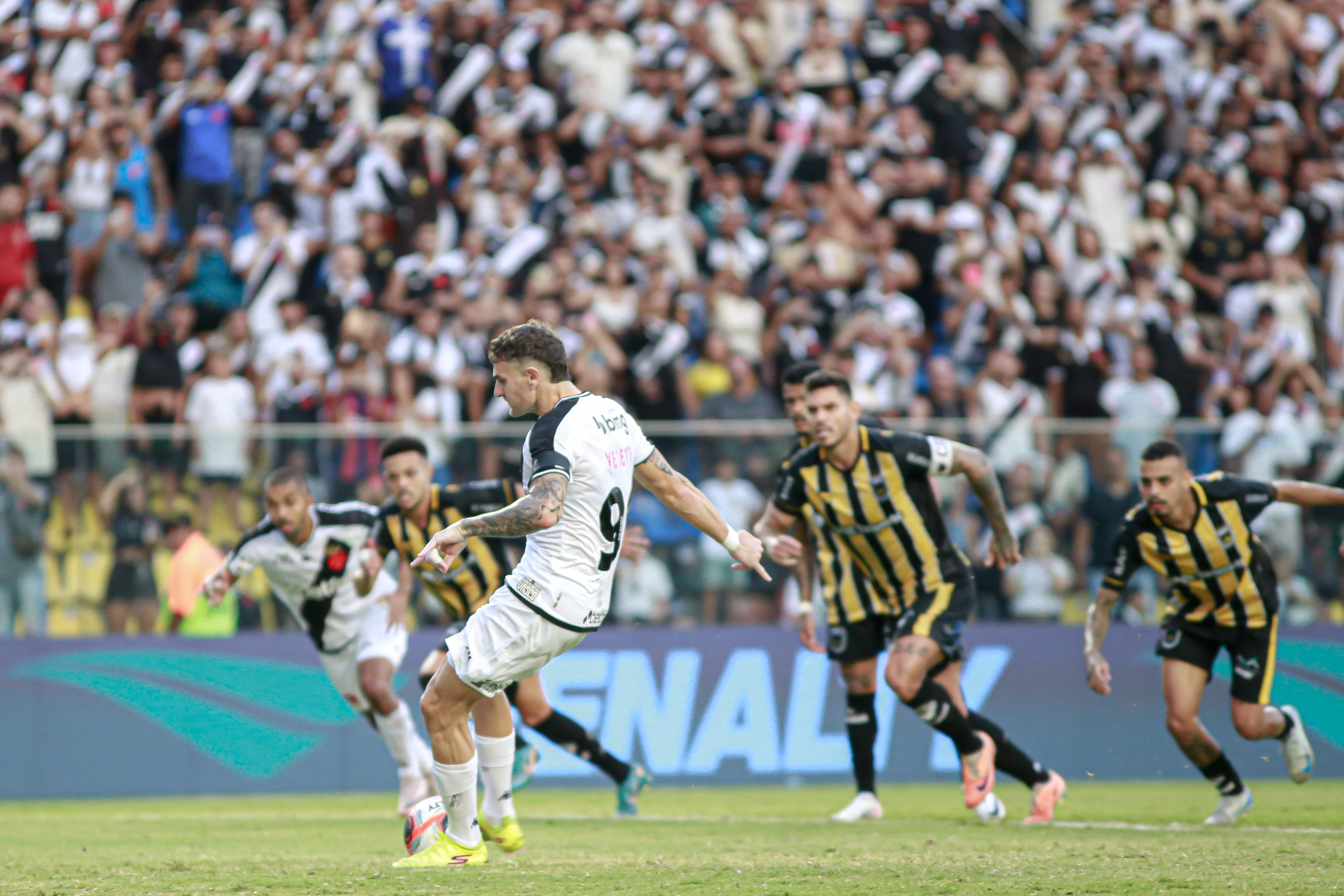 Porém o placar não durou muito tempo. Aos 10, Jair tentou jogada individual e foi derrubado na área por Cayo Tenório. Pênalti! Na cobrança, Vegetti bateu no meio e empatou o jogo.