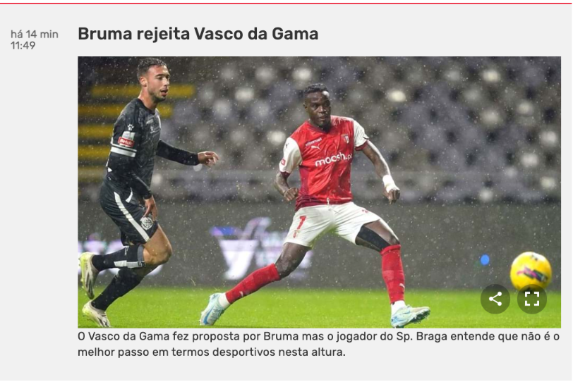 record.pt, o atacante Bruma teria rejeitado proposta do Vasco da Gama.