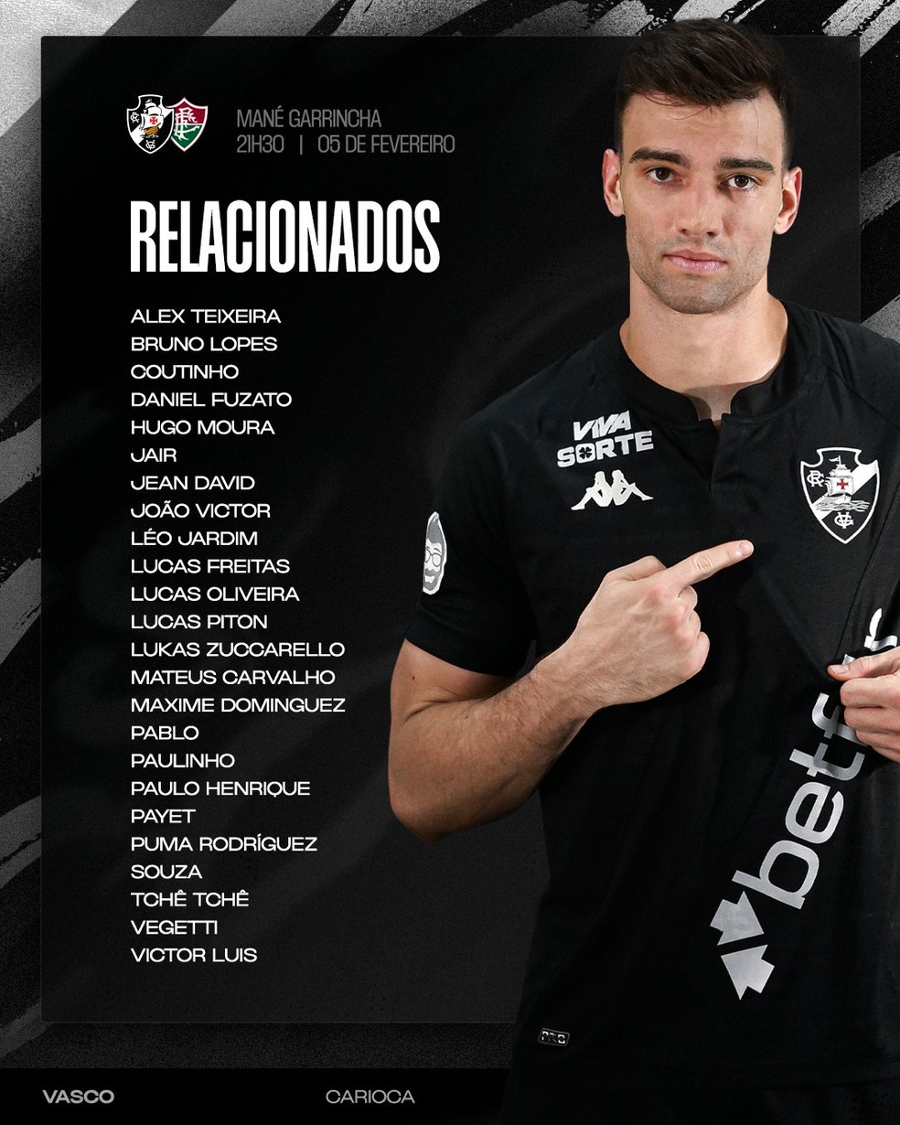 O Vasco iniciou na tarde desta terça-feira a viagem rumo a Brasília, onde a equipe de Fábio Carille enfrentará o Fluminense no Mané Garrincha, nesta quarta-feira, às 21h30. O clube divulgou a lista de relacionados para a partida nesta terça-feira. Paulo Henrique estará à disposição da comissão técnica, enquanto Maurício Lemos seguirá sendo desfalque.