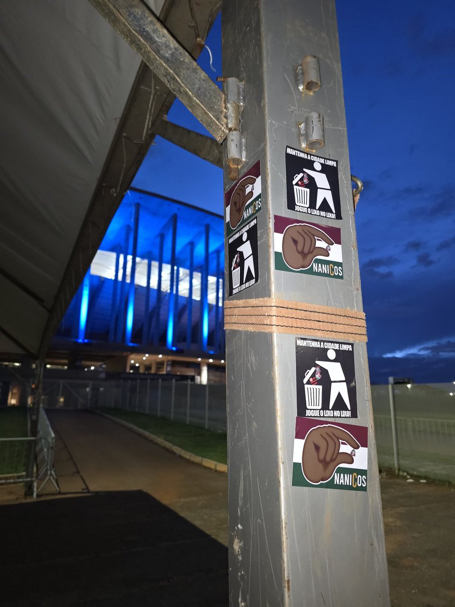 Torcedores colam adesivos provocando Fluminense, Urubu e Corinthians no Mané Garrncha; veja fotos