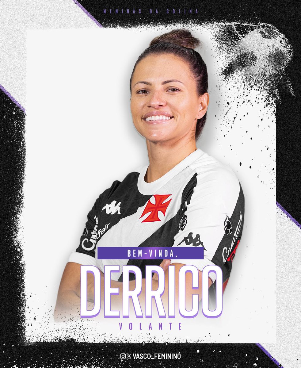 O Vasco da Gama anunciou a chegada da atleta Derrico para reforçar o elenco na temporada de 2025 das Meninas da Colina.