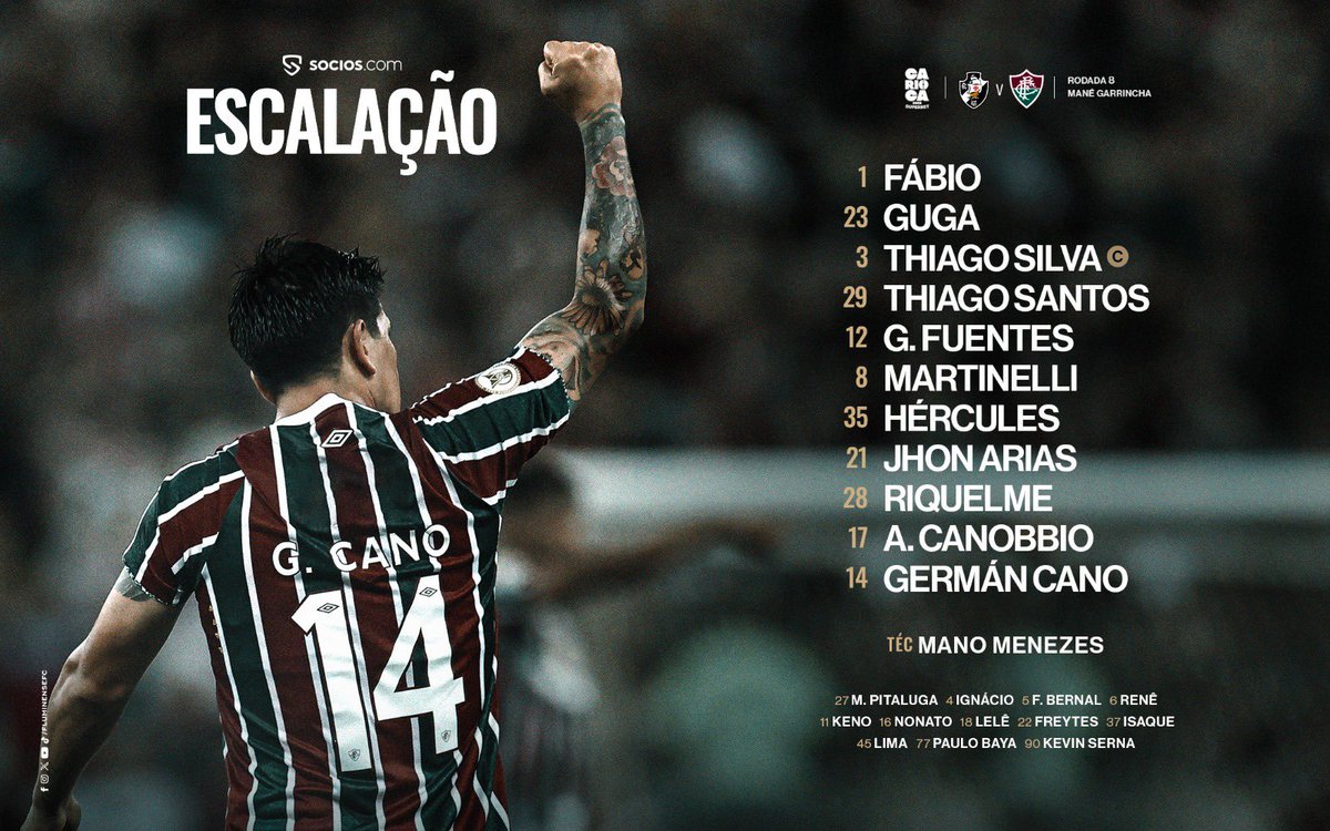 Veja a escalação do Fluminense para o jogo contra o Vasco; ex-vascaínos Fabio e Cano são titulares