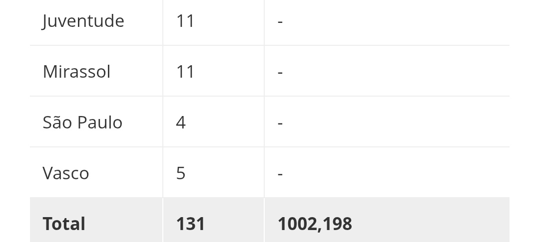 | Palmeiras | 3 | 232,760 |