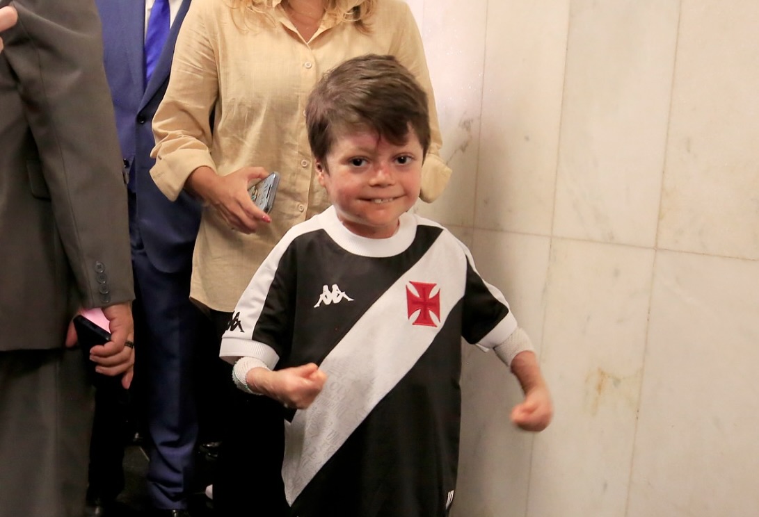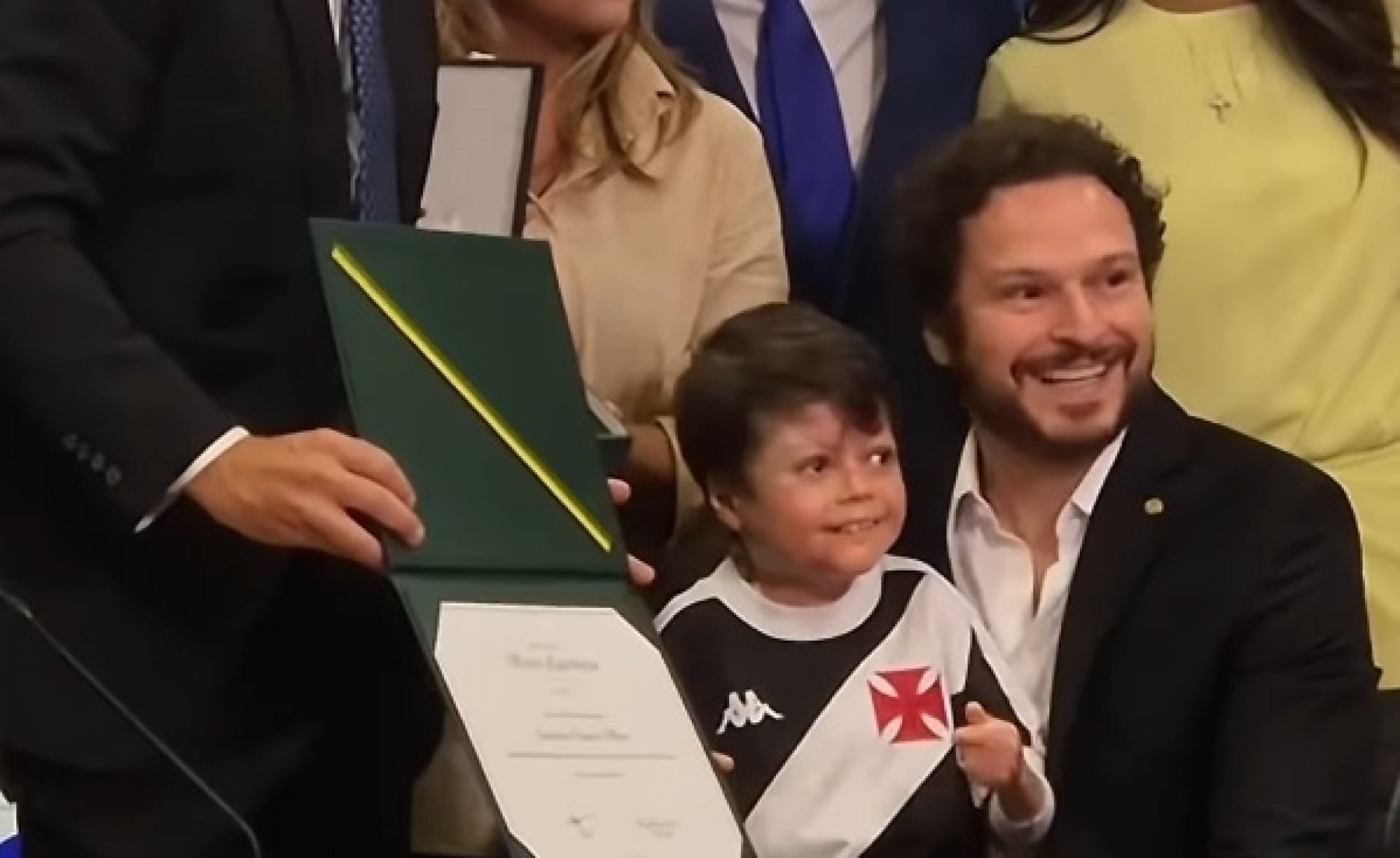 O torcedor Guilherme Gandra, conhecido como menino Gui, recebeu a Medalha do Mérito Legislativo, a mais alta honraria da Câmara dos Deputados, nesta quarta-feira (5). O jovem vascaíno de 10 anos se tornou um símbolo da luta dos pacientes com epidermólise bolhosa, uma doença rara que provoca feridas na pele.