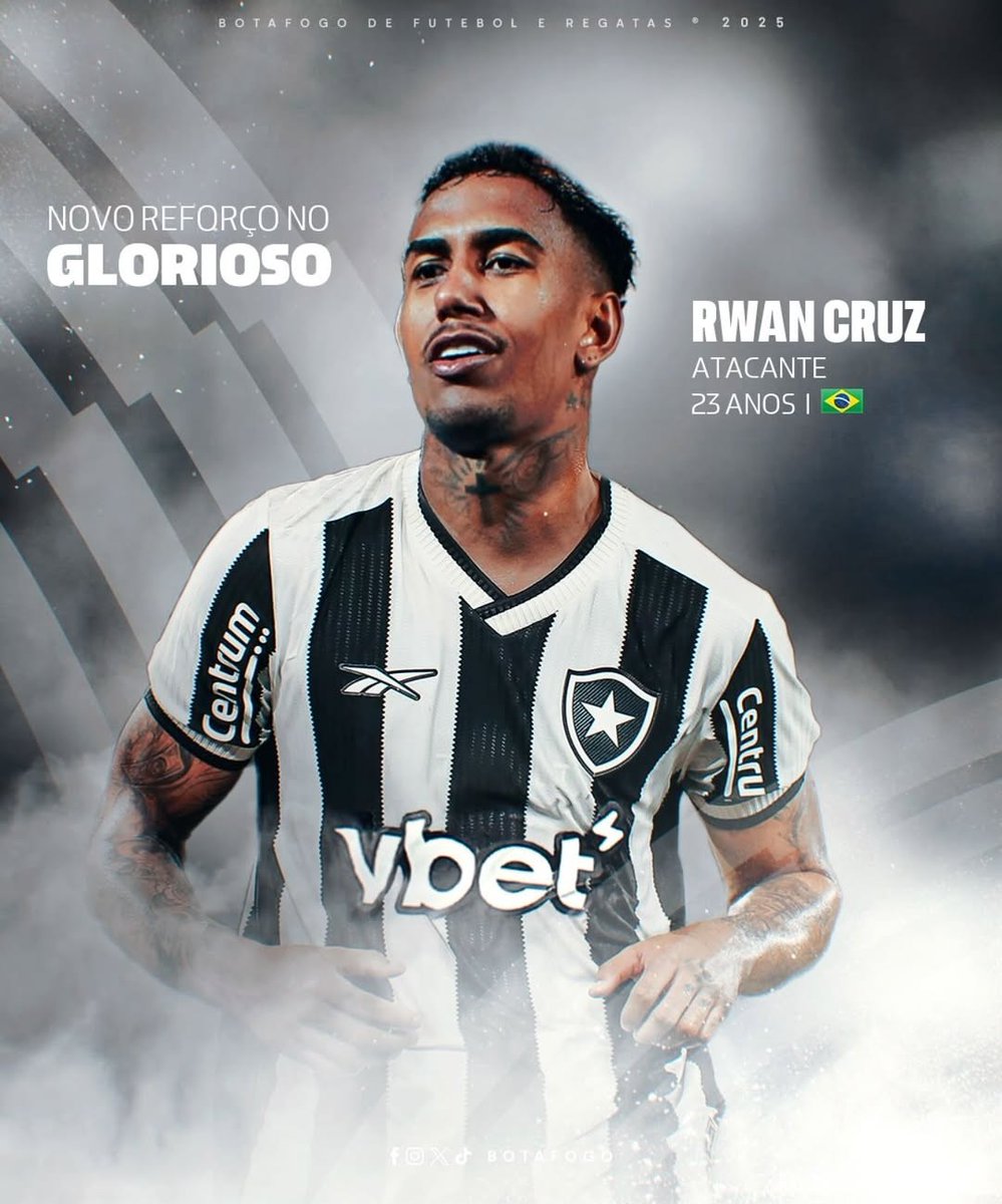 🎙️ | O Botafogo segue reforçando seu plantel e fechou a contratação do quarto reforço para a temporada. Trata-se do atacante Rwan Cruz, que chega em definitivo do Ludogorets, da Búlgaria, ao Fogão com contrato válido até o final de 2028.