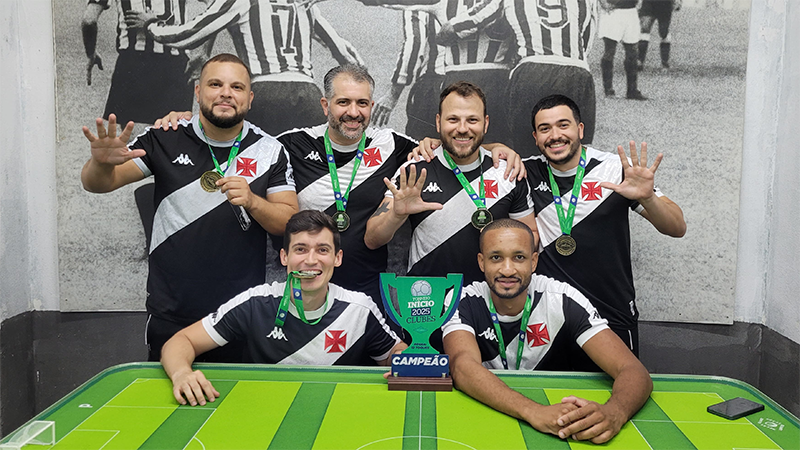 "Tudo normal no Rio de Janeiro". O bordão usado pelos cruzmaltinos, a cada conquista, foi mais uma vez entoado ao término do Torneio Início Interclubes de Equipes 5 x 5, neste sábado (8/2), no CT do Botafogo Futmesa, no Centro do Rio de Janeiro. Após seis jogos e seis vitórias, o time de São Januário sagrou-se pentacampeão do Torneio Início Interclubes, competição que abriu oficialmente a temporada de 2025 do futebol de mesa carioca – na regra 12 toques –, e que promete ser uma das mais promissoras e equilibradas dos últimos anos.