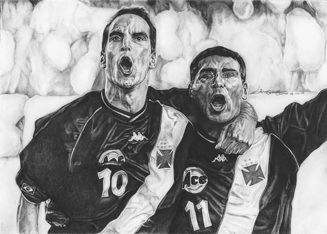 Artista vascaíno Luan Gomes faz desenho de comemoração histórica de Romário e Edmundo