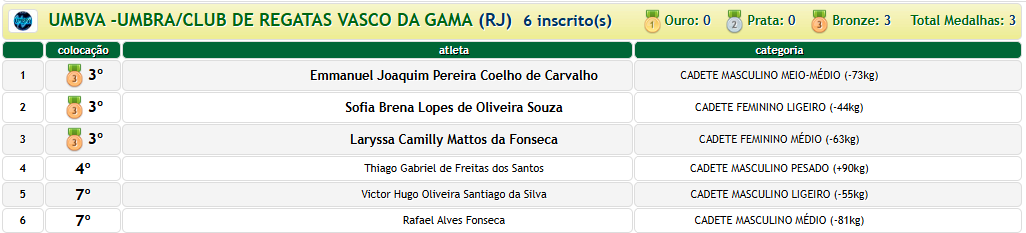Judô: Vascaínos conquistam 3 bronzes no 1º dia do Meeting Nacional Sub-18 e Sub-21