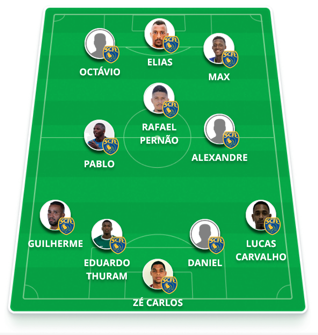 Provável escalação do Sampaio Corrêa: Zé Carlos, Lucas, Daniel, Thuram, Guilherme, Pablo, Alexandre, Pernão, Max, Octávio e Elias.