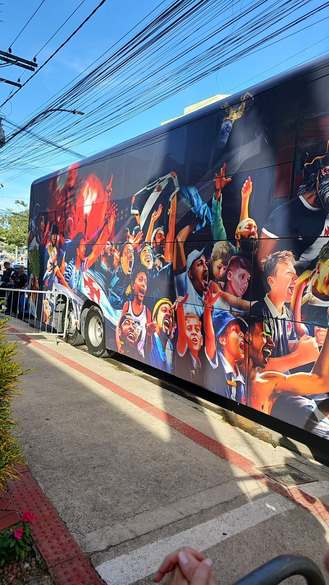 Daqui a pouco, o elenco deixará o local rumo ao estádio. Alguns torcedores aguardam a saída por aqui.