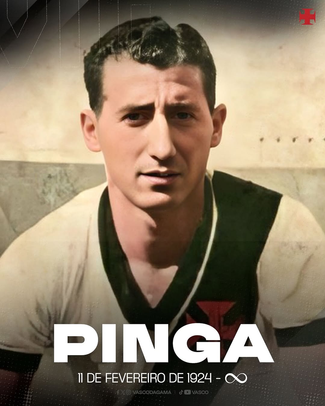 O grande ídolo vascaíno José Lázaro Robles, mais conhecido como Pinga, completaria hoje 101 anos de idade.