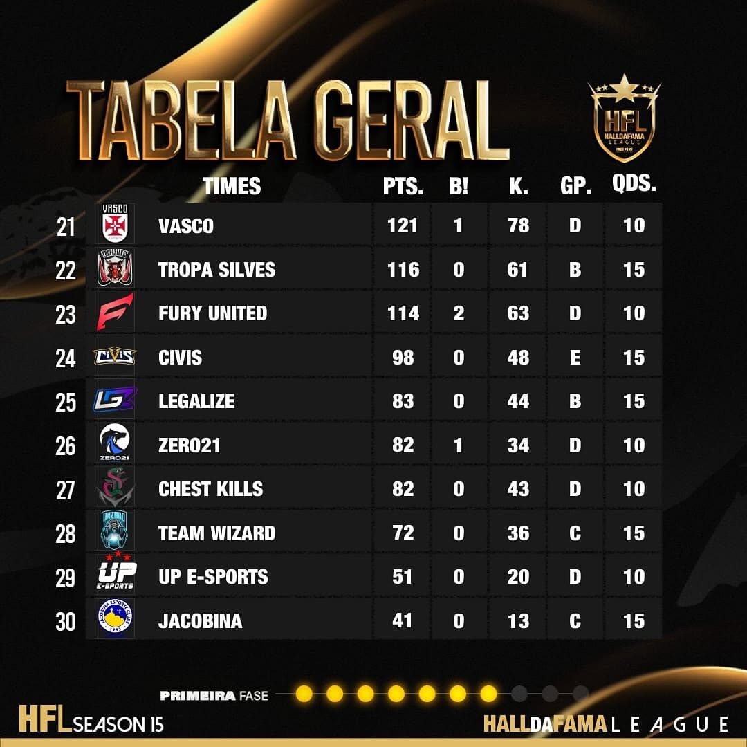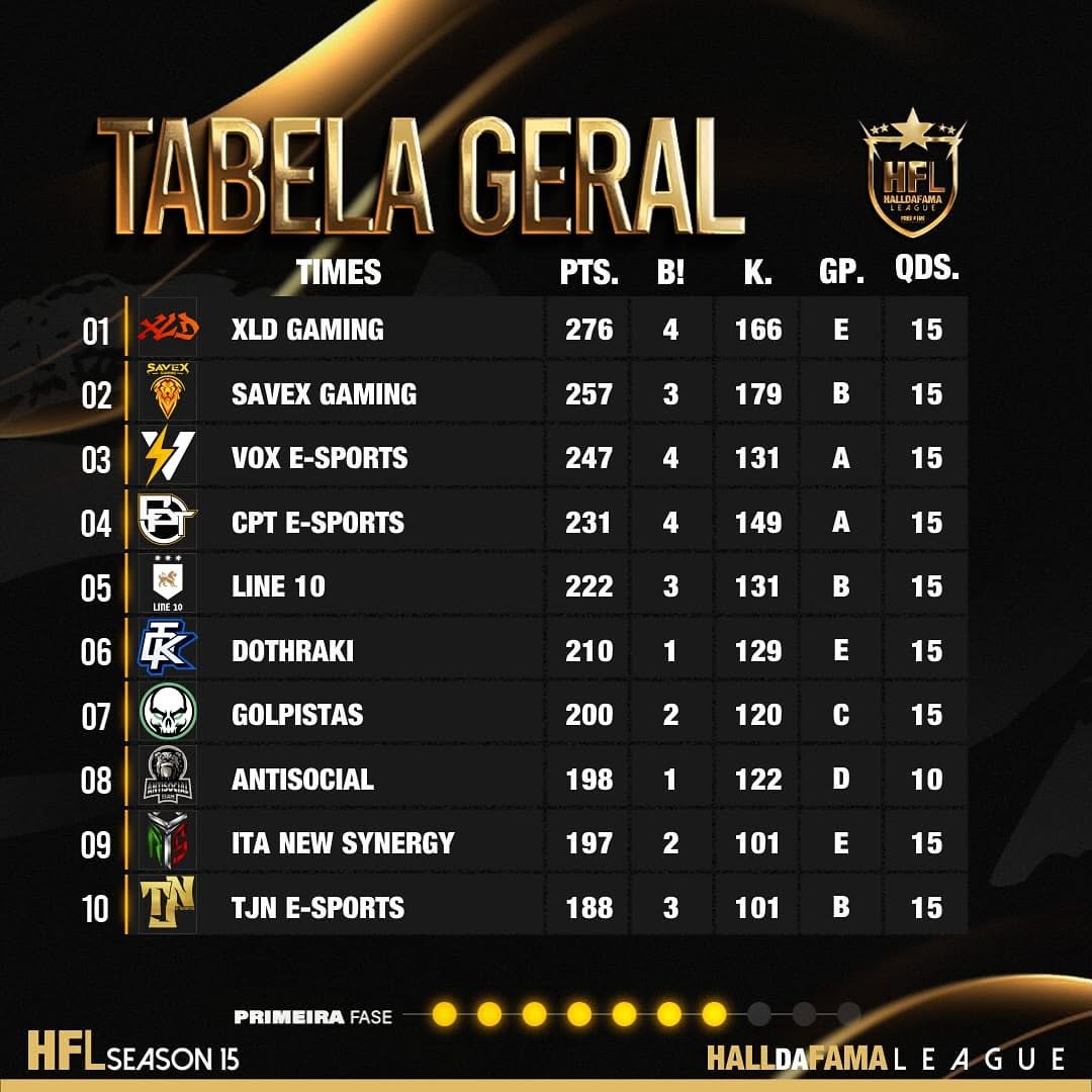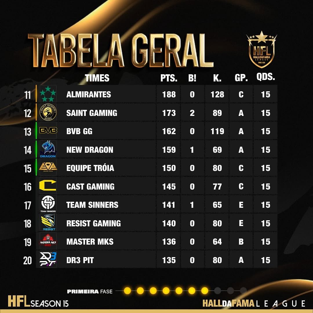 Tabela da RODADA 7 da FASE CLASSIFICATORIA da LIGA HFL SÉRIE A ELITE SEASON 15 🔥🚀
