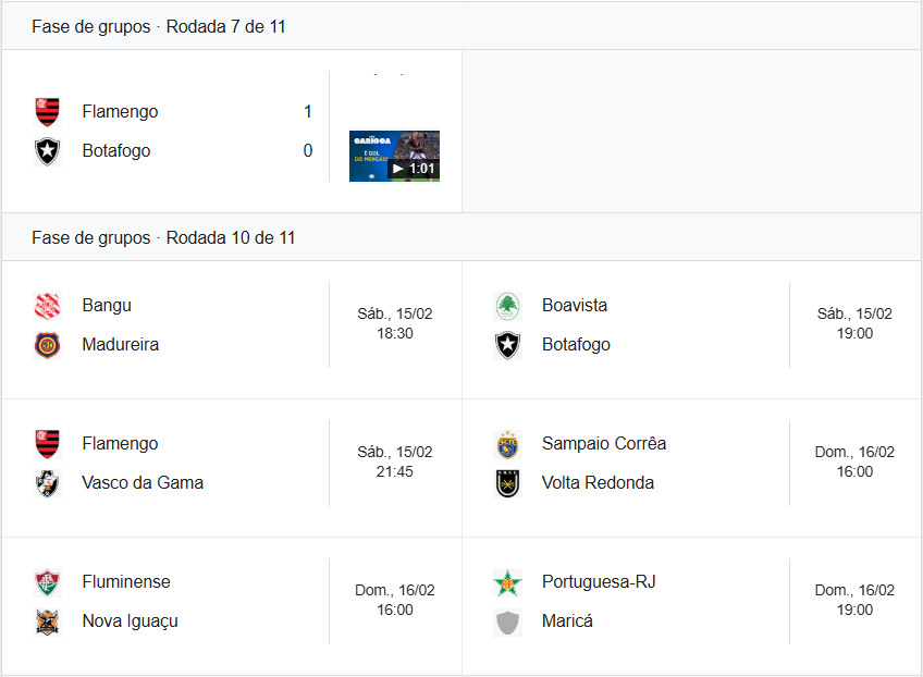 Em jogo atrasado da 7ª rodada da Taça Guanabara, o Flamengo, próximo adversário do Vasco, derrotou o Botafogo por 1 a 0. O Vasco segue na 3ª posição e depende apenas de si para se classificar para as semifinais do Carioca.