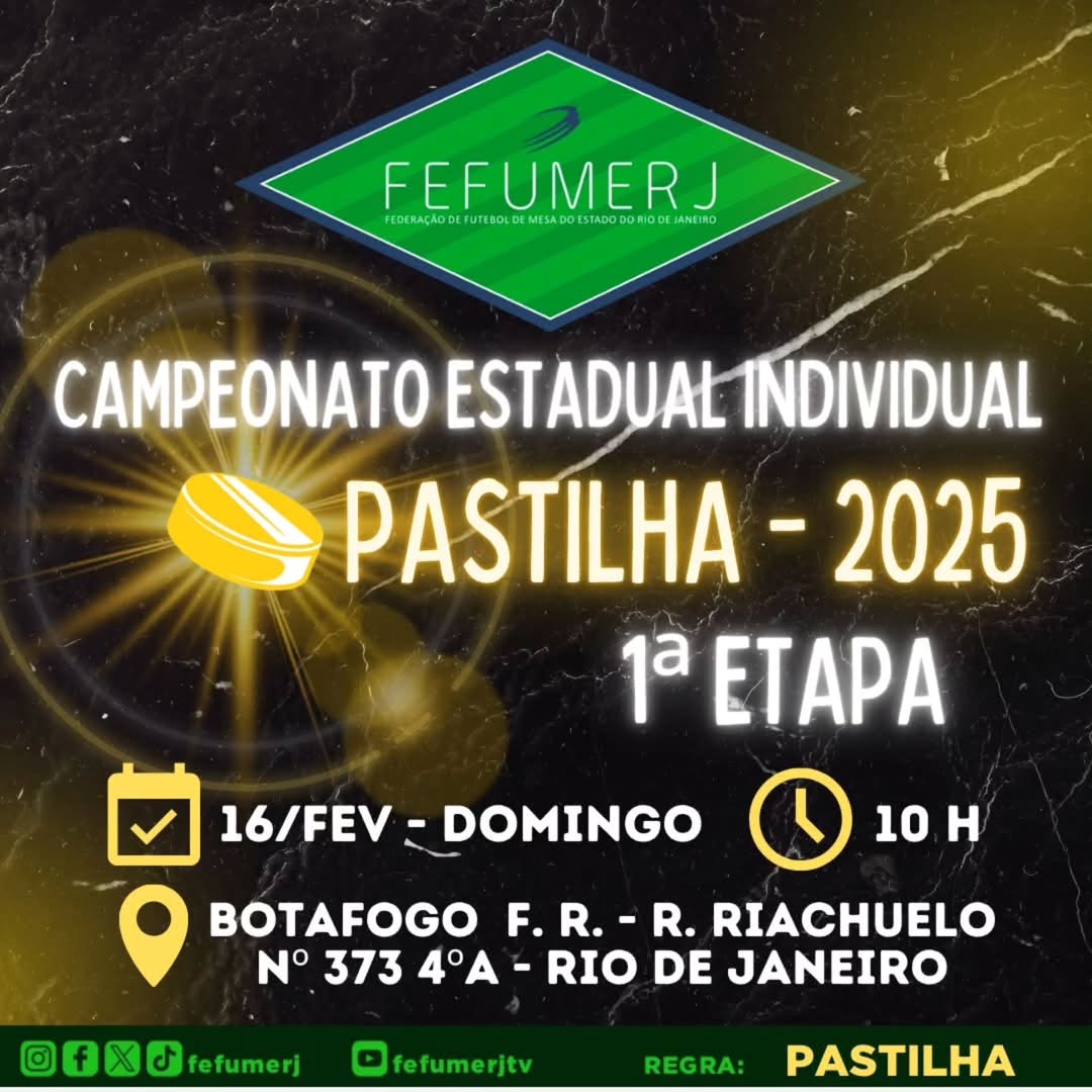 Neste domingo (16/2) começa o Estadual Individual da Regra Pastilha. A 1ª Etapa será na sede do Botafogo Futmesa, no Centro do Rio, às 10h.