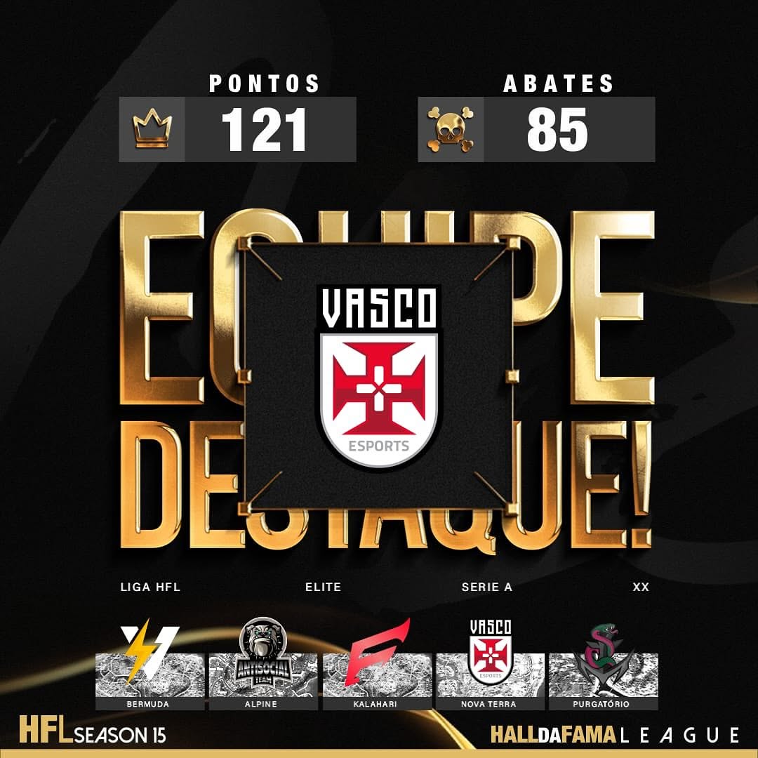 E o time DESTAQUE da RODADA 8 da FASE CLASSIFICATÓRIA da LIGA HFL SÉRIE A ELITE SEASON 15 foi a @vasco.esports que doutrinou durante as 5 quedas🔥🚀