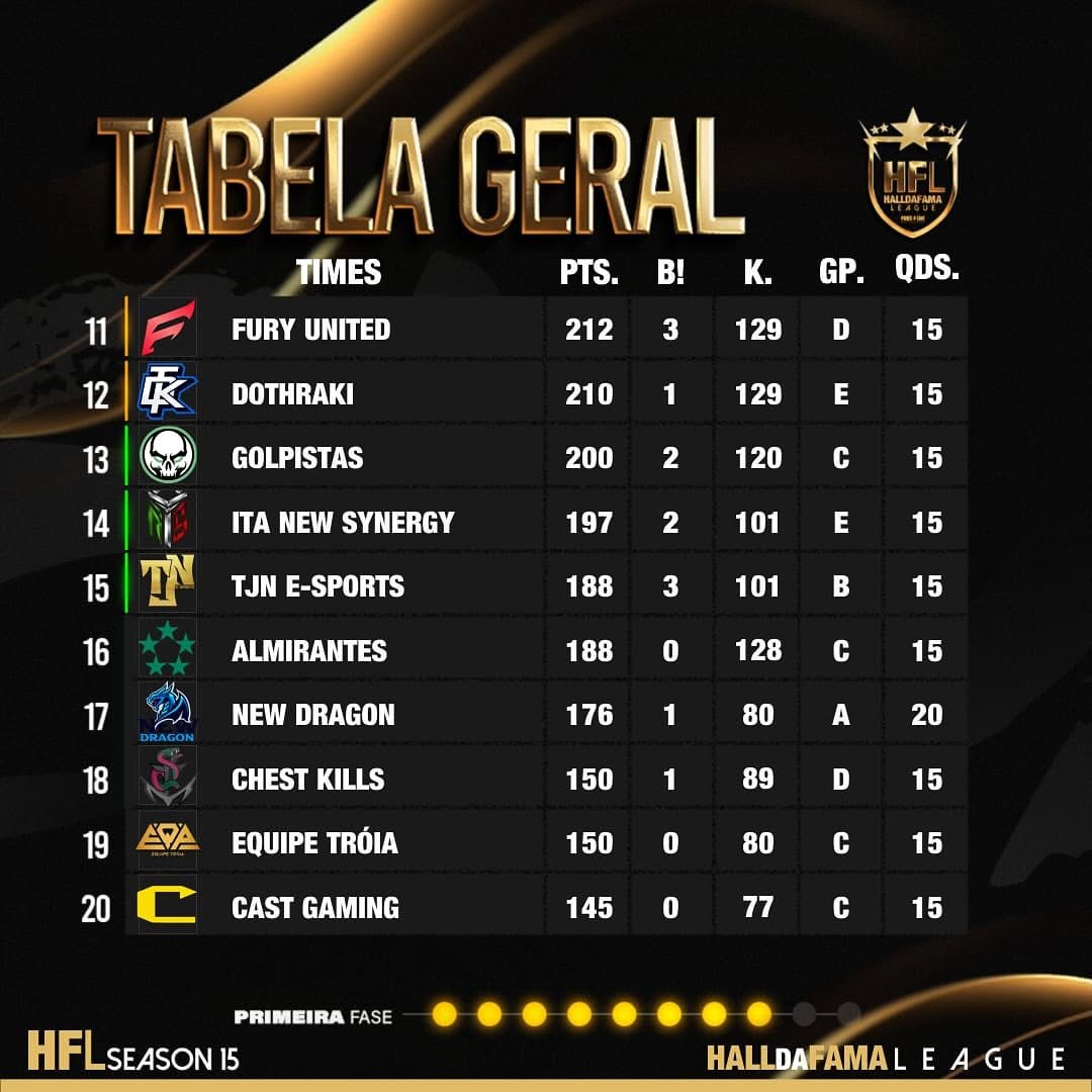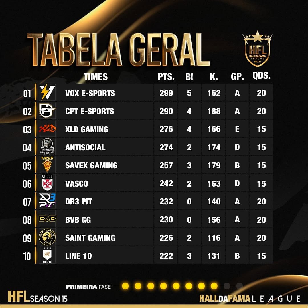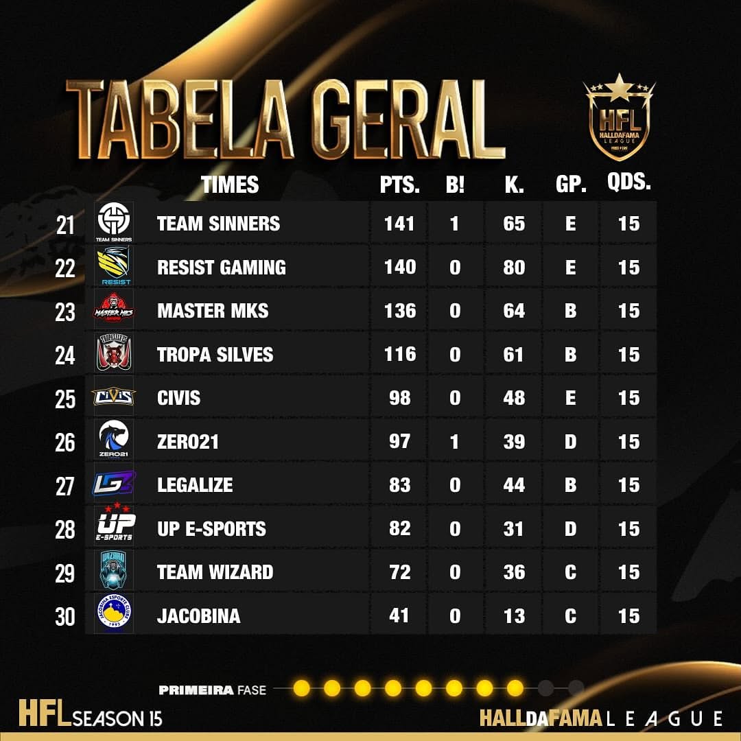 Tabela da RODADA 8 da FASE CLASSIFICATORIA da LIGA HFL SÉRIE A ELITE SEASON 15 🔥🚀
