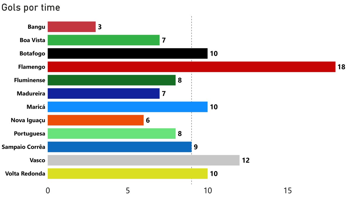 Ele fica atrás do Flamengo, que marcou 18 até aqui.