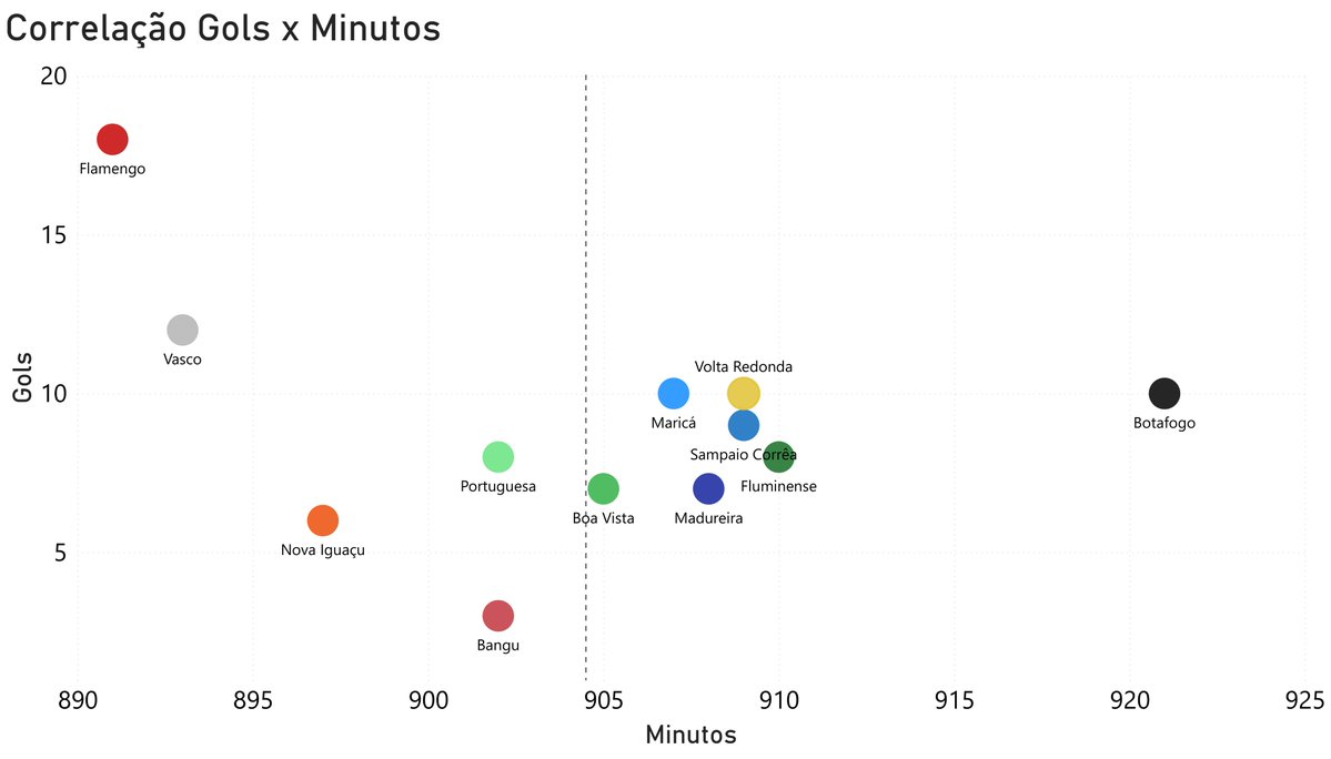 Nele, é possível constatar que o Vasco é o segundo time com menos tempo em campo, mas também o segundo time com mais gols.