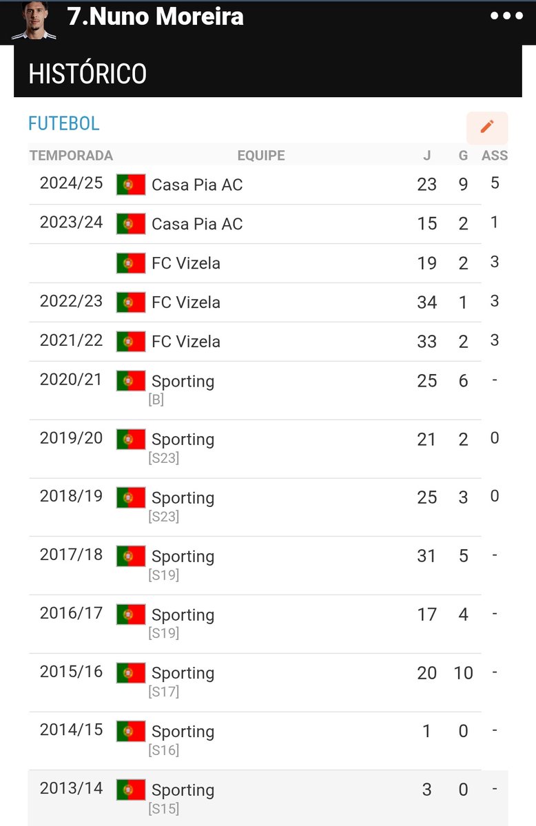 🚨 Vasco tem interesse e tem conversas em andamento para contratar o atacante português, Nuno Moreira, do Casa Pia.