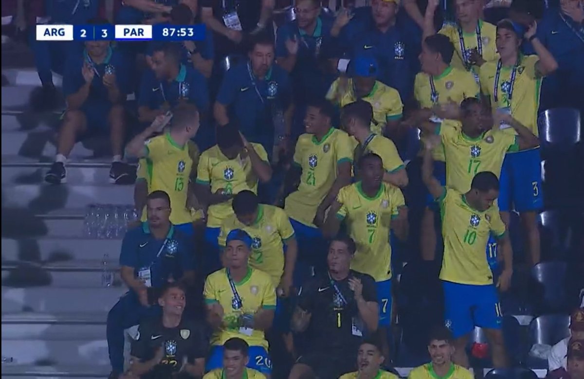 RAYAN JUNTO COM A SELEÇÃO BRASILEIRA SUB-20, COMEMORA O TERCEIRO GOL DO PARAGUAI.