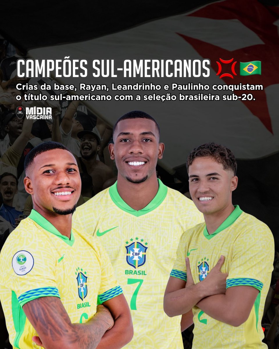 Parabéns aos três jogadores da base do Vasco que estavam nesse elenco: os laterais Paulinho e Leandrinho, além do atacante Rayan, que fez o gol mais importante da Seleção no torneio.