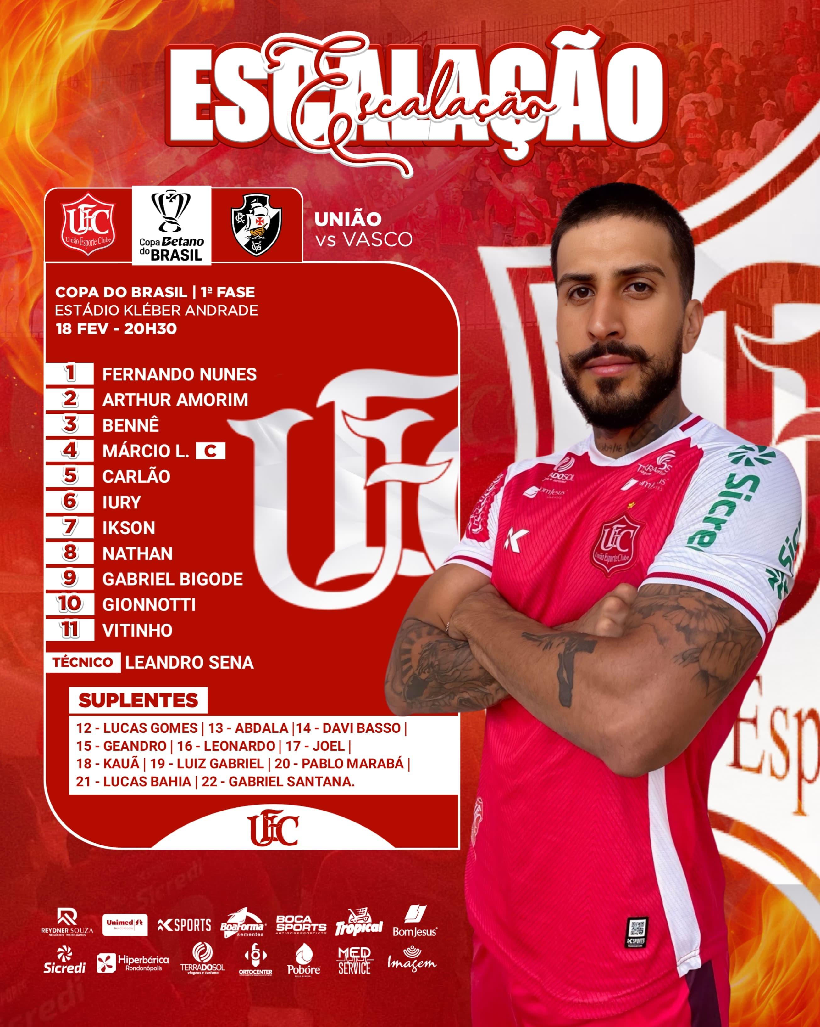 Veja a escalação do União-MT para o jogo contra o Vasco