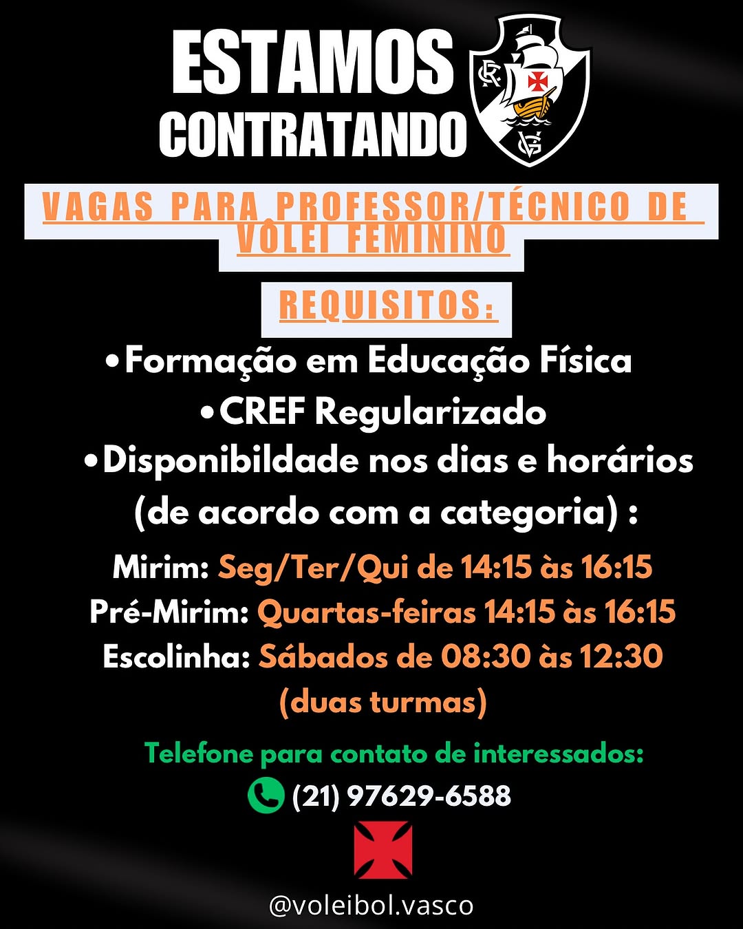 Vôlei Feminino: Vasco abre vaga para técnicos em 3 categorias